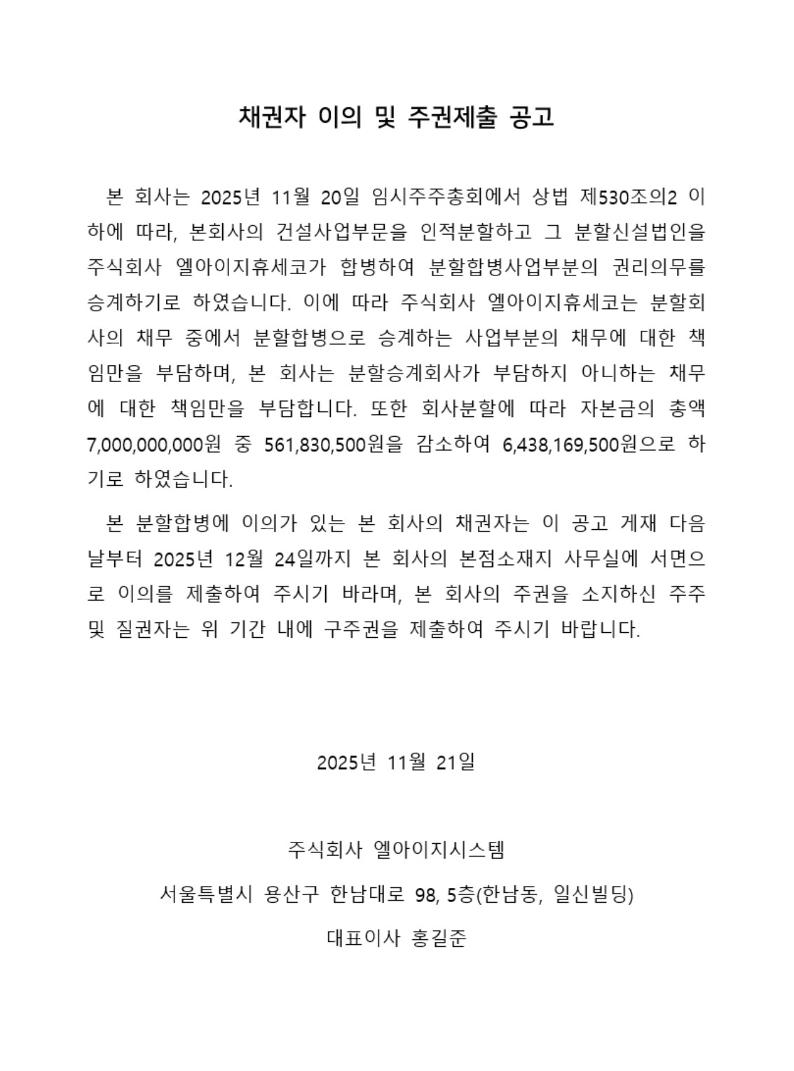 LIG시스템에서 새로운 소식을 알려드립니다.