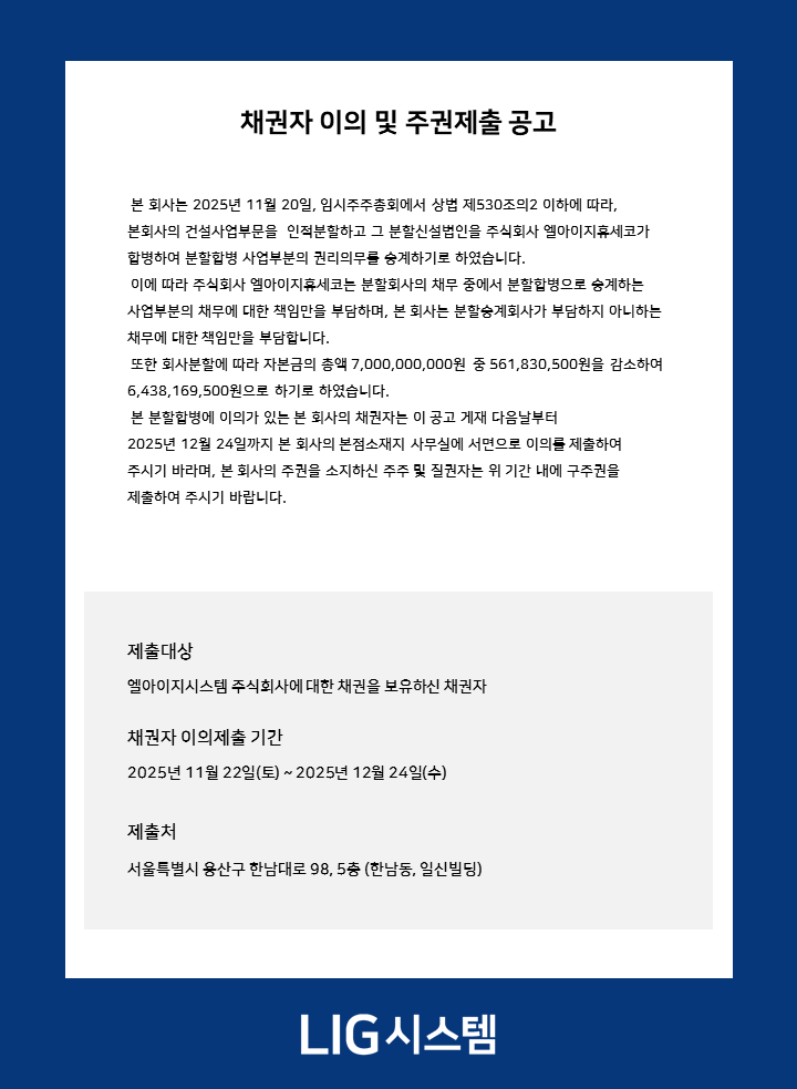 회사분할합병에 따른 채권자 이의 및 주권제출 통지
