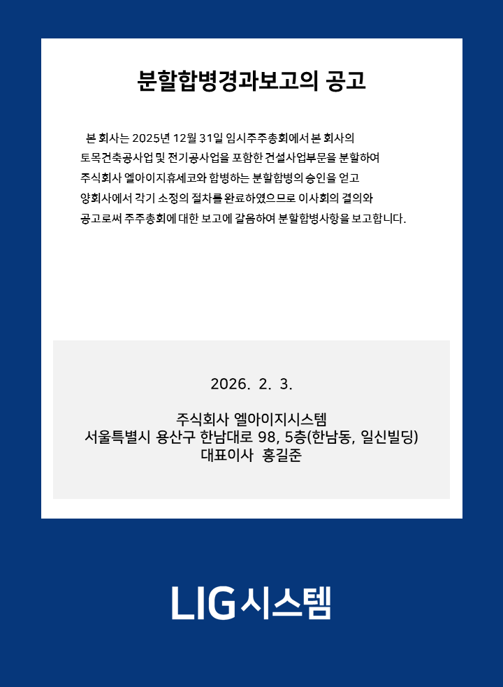 분할합병경과보고 공고